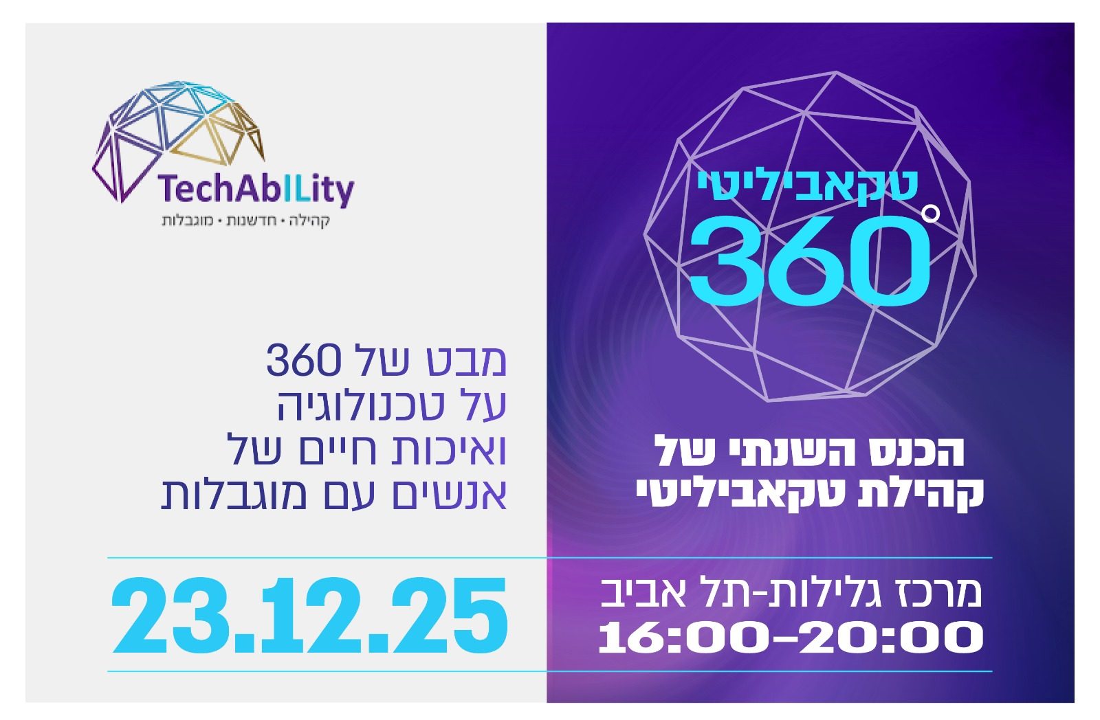 כנס טקאביליטי 360° מציע מבט רב-ממדי על החיבור המרתק שבין טכנולוגיה לבין אנשים עם מוגבלות. הכנס הוא המקום שבו כל אחת ואחד יכולים להיות חלק משיחה משמעותית על עתיד הטכנולוגיה ואיכות החיים של אנשים עם מוגבלות. השנה אנו מזמינות אתכם להגיע, לחוות, לשאול, לפגוש ולגלות מה באמת קורה בשטח – דרך עיניים של אנשים עם […]